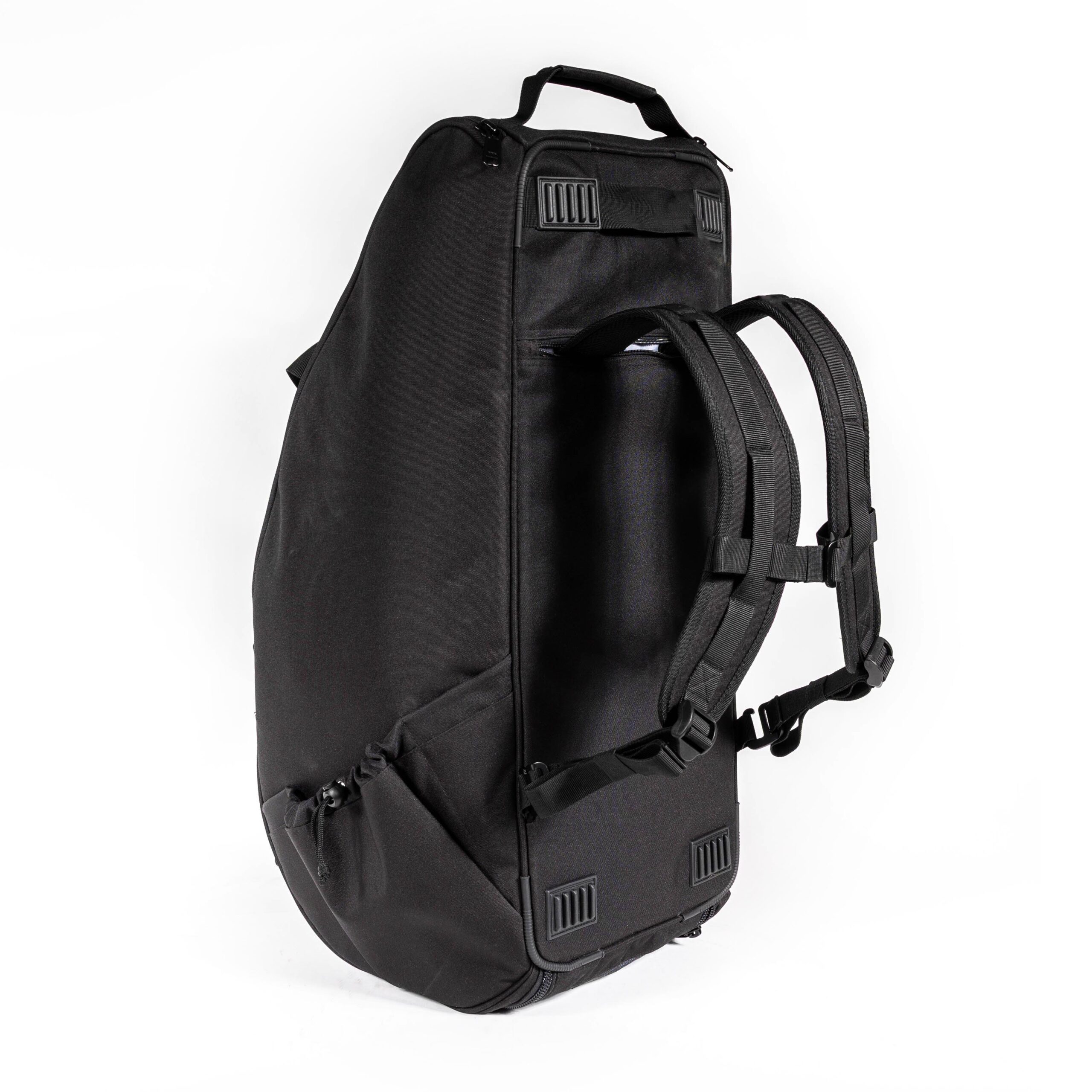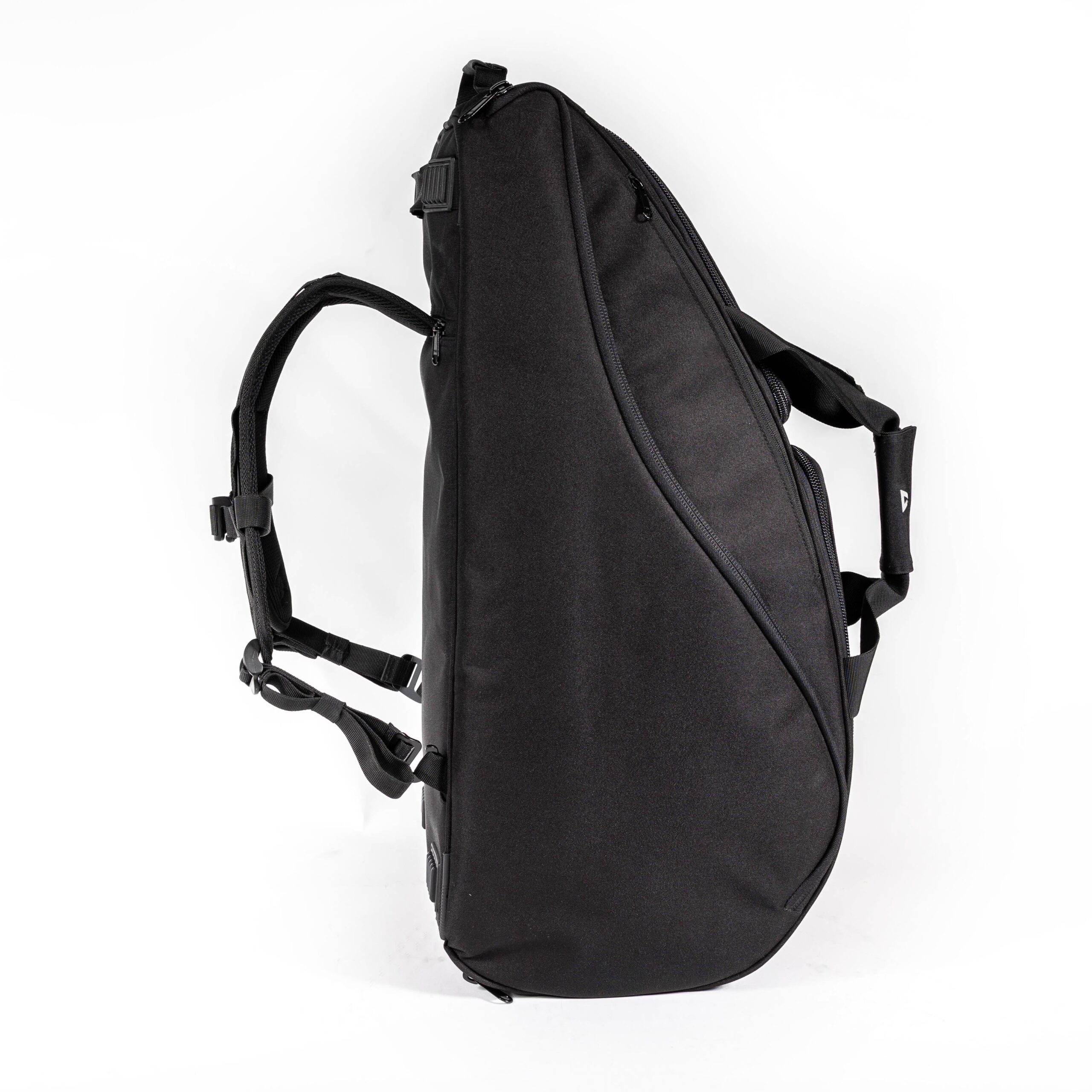 De tas heeft verstelbare rugbanden die je kunt opbergen in de ritsopening, zodat je de draagbanden kunt gebruiken zonder dat de rugbanden over de grond slepen.